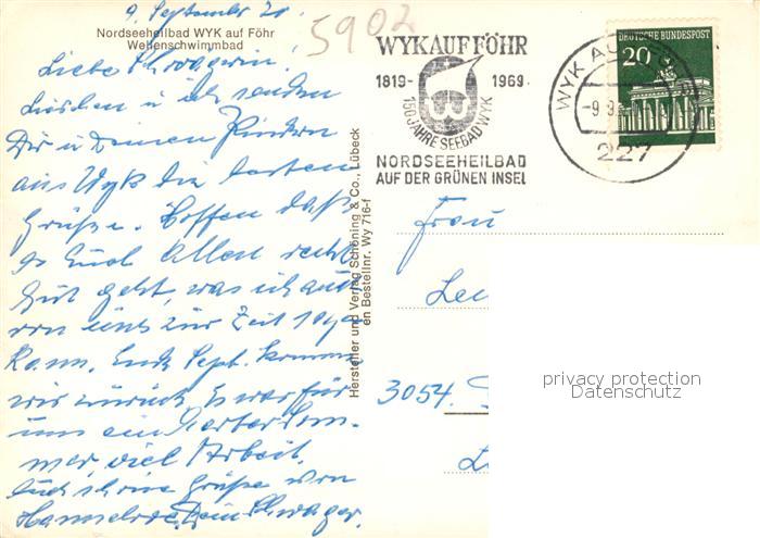 73160171 alte Postkarte Wyk Foehr Wellenschwimmbad postalisch gelaufen Erhaltung siehe scans [KathaD81] KatCode: 11110001054164