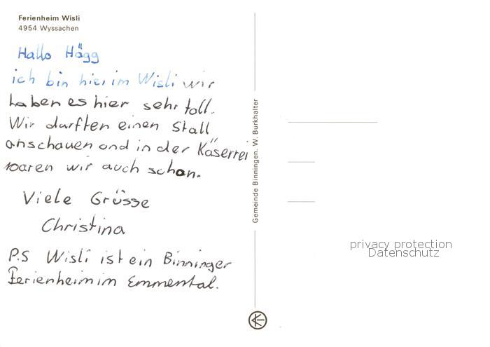 13864143 Wyssachen Emmental BE Ferienheim Wisli postalisch nicht gelaufen Erhaltung siehe scans [WerneD78] KatCode: 11470060245862