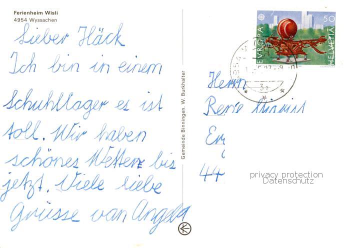 13864605 alte Postkarte Wyssachen Emmental BE Ferienheim Wisli postalisch gelaufen Erhaltung siehe scans [WerneD78] KatCode: 11470060245862