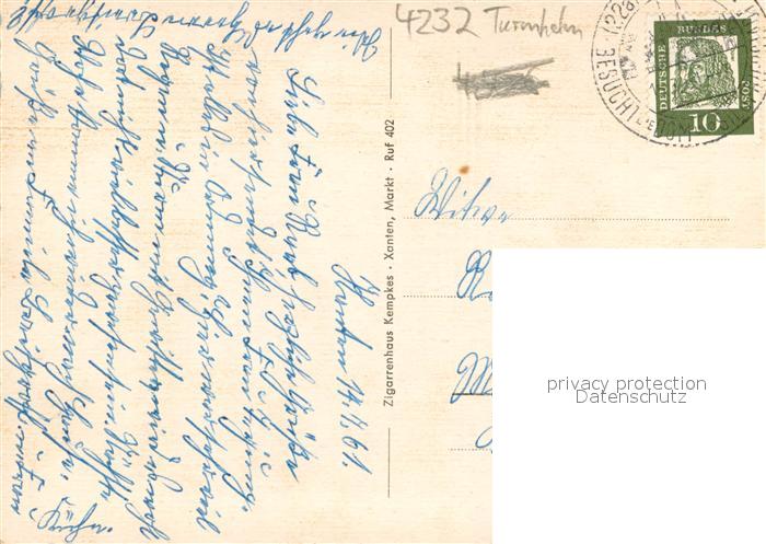 73692618 alte Postkarte Xanten Ehem. Karthaeuserkloster Muehle Dom Markt Klever Tor Schule Amphitheater postalisch gelaufen Erhaltung siehe scans [FriedD77] KatCode: 11110005170052