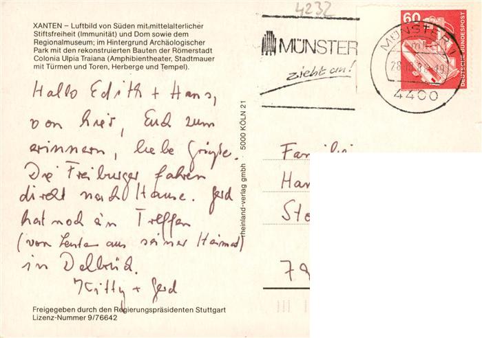 73943086 alte Postkarte Xanten Fliegeraufnahme postalisch gelaufen Erhaltung siehe scans [FriedD77] KatCode: 11110005170052