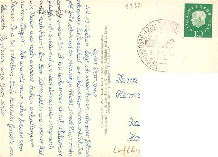 73872634 alte Postkarte Xanten St Josef Hospital Fliegeraufnahme postalisch gelaufen Erhaltung siehe scans [WerneD78] KatCode: 11110005170052