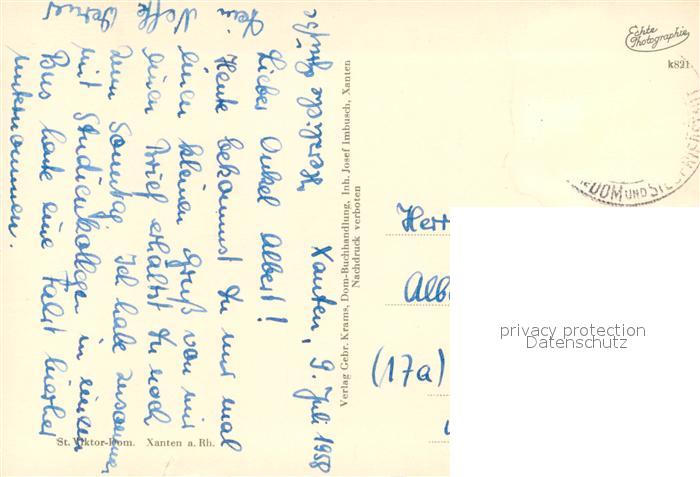 73622821 alte Postkarte Xanten St Viktor Dom postalisch gelaufen Erhaltung siehe scans [WerneD78] KatCode: 11110005170052