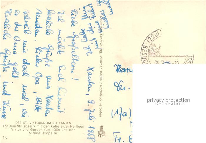 73622822 alte Postkarte Xanten St Viktorsdom Tor zum Stiftsbezirk mit den Reliefs der Hl Viktor und Gereon und der Michaeliskapelle postalisch gelaufen Erhaltung siehe scans [WerneD78] KatCode: 11110005170052