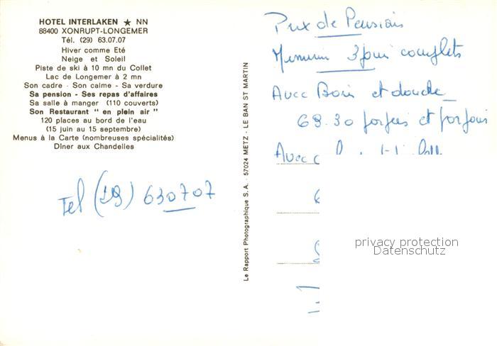 13233618 Xonrupt-Longemer Hotel Interlaken postalisch nicht gelaufen Erhaltung siehe scans [LiesaD40] KatCode: 11170088388531