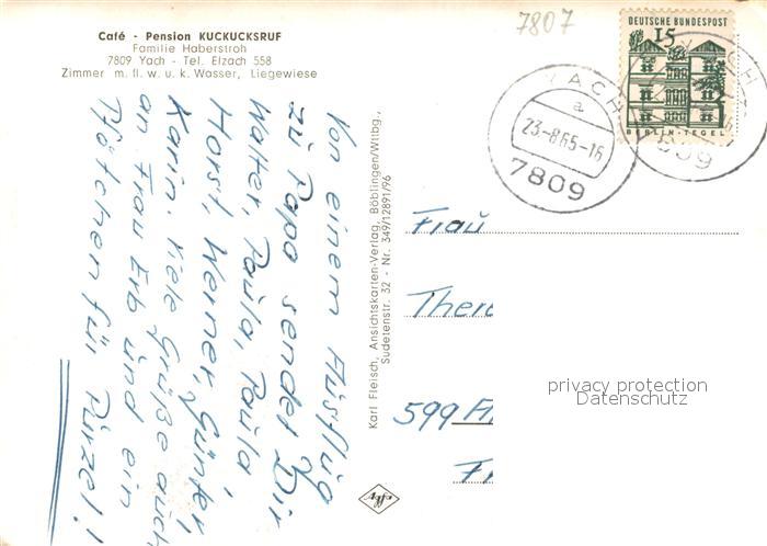 43287538 alte Postkarte Yach Cafe Pension Kuckucksruf Gaststube Kirche Panorama postalisch gelaufen Erhaltung siehe scans [FriedD77] KatCode: 11110008316010
