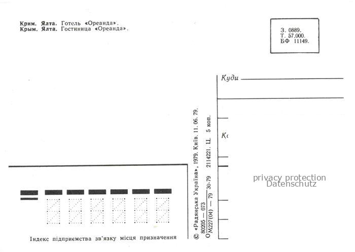 74042296 Yalta Jalta Krim Crimea Hotel Oreanda postalisch nicht gelaufen Erhaltung siehe scans [IrynaD87] KatCode: 11545