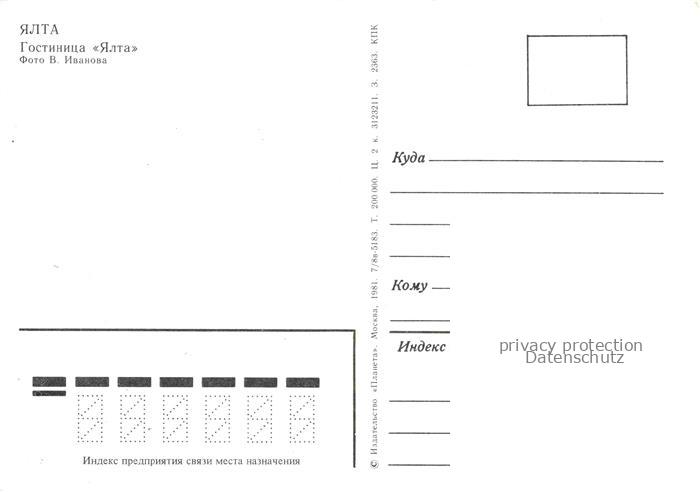 74042286 Yalta Jalta Krim Crimea Hotel Yalta postalisch nicht gelaufen Erhaltung siehe scans [IrynaD87] KatCode: 11545