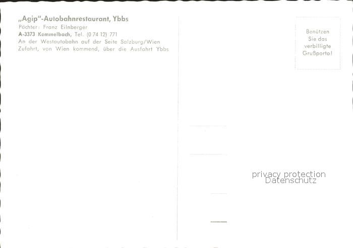 72108270 Ybbs Donau Autobahn-Restaurant Agip postalisch nicht gelaufen Erhaltung siehe scans KatCode: 11390121031549