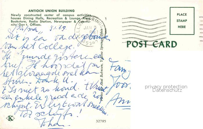 72905616 old postcard Yellow Springs Antioch Union Building postalisch gelaufen Erhaltung siehe scans [FriedD77] KatCode: 14140370000000