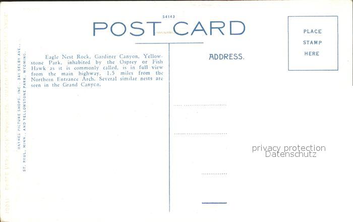 12020921 Yellowstone National Park Eagle Nest Rock Gardiner Canyon postalisch nicht gelaufen Erhaltung siehe scans KatCode: 14140530000000