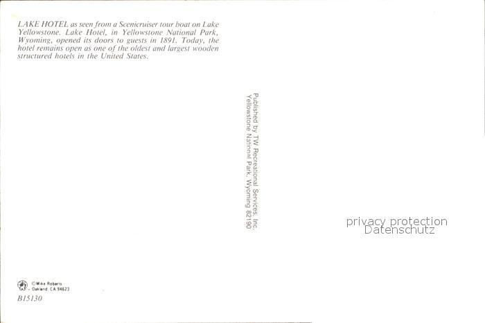 72444515 Yellowstone National Park Lake Hotel Boat postalisch nicht gelaufen Erhaltung siehe scans KatCode: 14140530000000