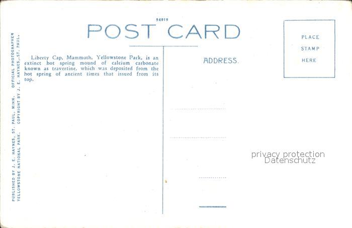 12020926 Yellowstone National Park Liberty Cap and Mammoth Hotel postalisch nicht gelaufen Erhaltung siehe scans KatCode: 14140530000000