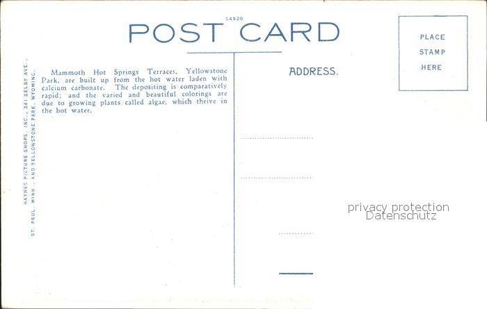 12020928 Yellowstone National Park Mammoth Hot Springs Terraces postalisch nicht gelaufen Erhaltung siehe scans KatCode: 14140530000000