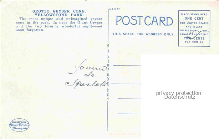 74011881 Yellowstone National Park Wyoming USA Grotto Geyser Cone postalisch nicht gelaufen Erhaltung siehe scans [FriedD77] KatCode: 14140530000000