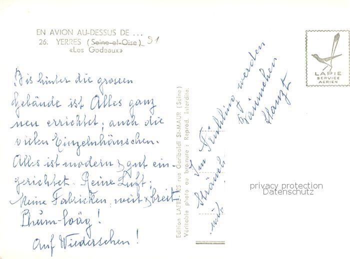 13853496 Yerres 91 Essonne Les Godeaux vue aérienne postalisch nicht gelaufen Fliegeraufnahme Erhaltung siehe scans [FriedD77] Fliegeraufnahme Frie Katcode 11170091291691