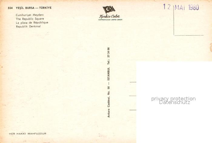 13658575 Yesil Bursa Cumhuriyet Meydani postalisch nicht gelaufen Erhaltung siehe scans [WerneD78] Wern Katcode 11530