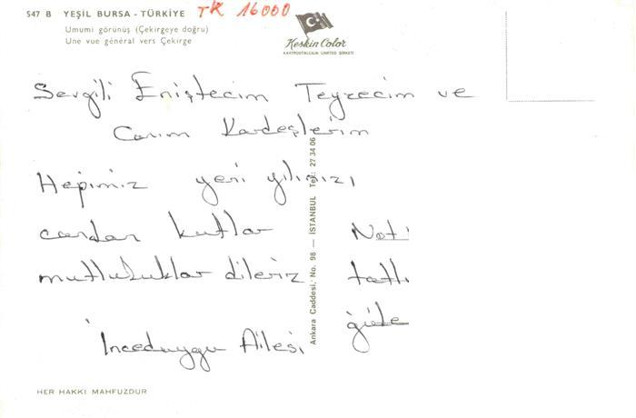 74014826 Yesil Bursa TK Une vue general vers Cekirge postalisch nicht gelaufen Erhaltung siehe scans [WerneD78] KatCode: 11530