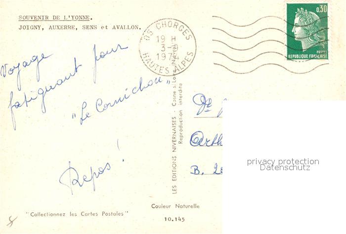 13326351 carte postale Yonne Region Joigny Auxerre Sens et Avallon postalisch gelaufen Erhaltung siehe scans [WerneD78] KatCode: 11170089189024