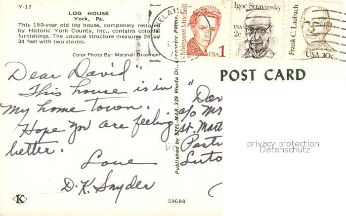73059079 old postcard York Pennsylvania Historic York County Old Log House postalisch gelaufen Erhaltung siehe scans [WerneD78] KatCode: 14140410000000