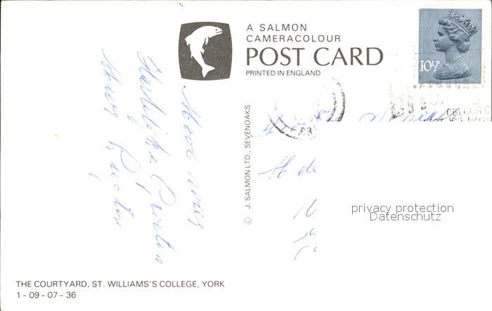 old postcard York UK The Courtyard Saint Williams s College postalisch gelaufen Erhaltung siehe scans