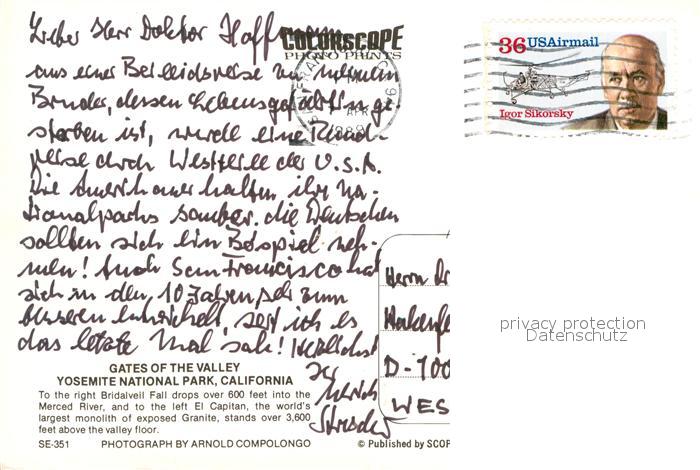 72930707 old postcard Yosemite National Park Gates of the Valley postalisch gelaufen Erhaltung siehe scans [NatalD47] KatCode: 14140050000000