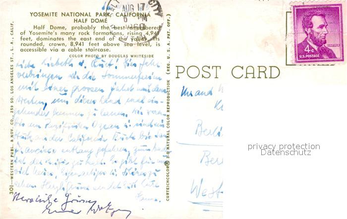 72926896 old postcard Yosemite National Park Half Dome postalisch gelaufen Erhaltung siehe scans [NatalD47] KatCode: 14140050000000