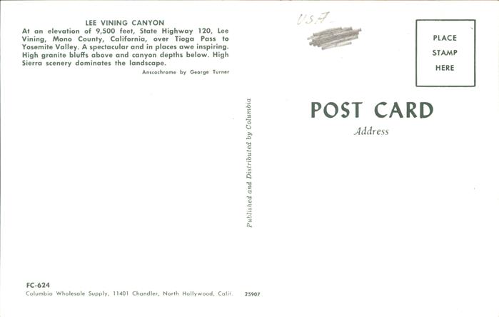 11491383 Yosemite National Park Lee Vining Canyon postalisch nicht gelaufen Erhaltung siehe scans KatCode: 14140050000000
