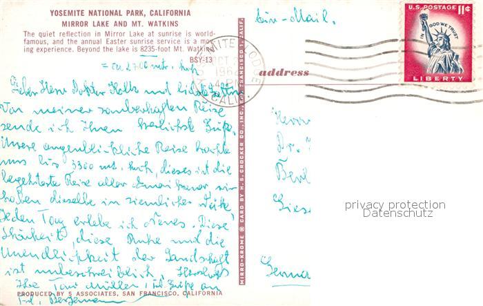 72926893 old postcard Yosemite National Park Mirror Lake Mt. Watkins postalisch gelaufen Erhaltung siehe scans [NatalD47] KatCode: 14140050000000
