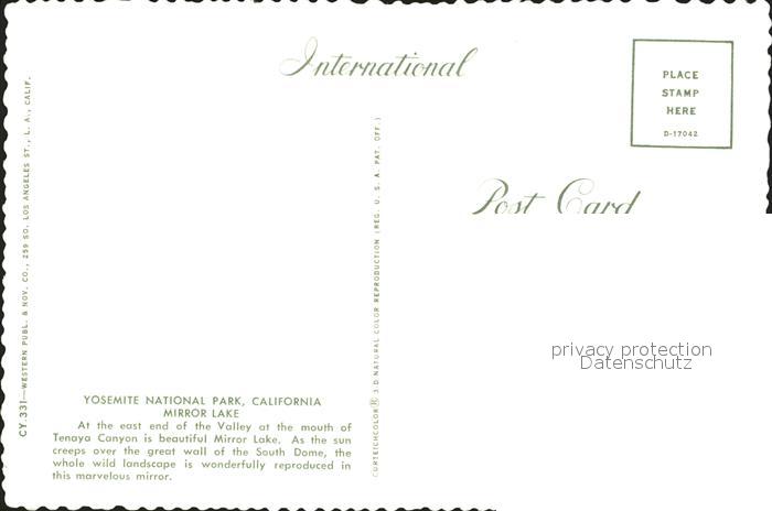 72370413 Yosemite National Park Mirror Lake postalisch nicht gelaufen Erhaltung siehe scans KatCode: 14140050000000