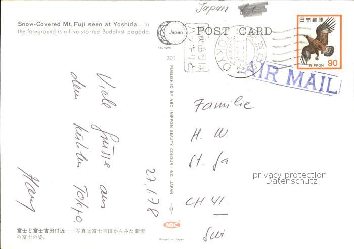 old postcard Yoshida Mt Fuji A five storied Buddhist pagoda postalisch gelaufen Erhaltung siehe scans [WerneD78]