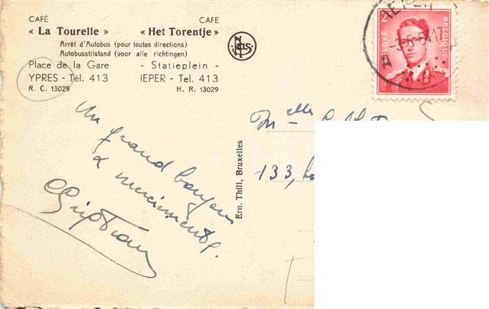 73973486 carte postale Ypres Ypern Ieper Belgie Café La Tourelle Place de la Gard postalisch gelaufen Erhaltung siehe scans [FriedD77] KatCode: 11070033000282