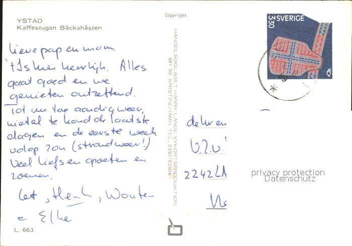 old postcard Ystad Kaffeestygan Baeckahaesten postalisch gelaufen Erhaltung siehe scans