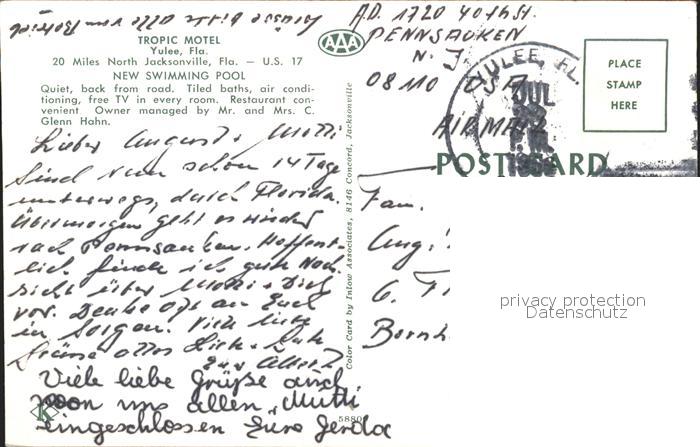 71953294 old postcard Yulee Tropic Motel postalisch gelaufen Erhaltung siehe scans KatCode: 14140110000000
