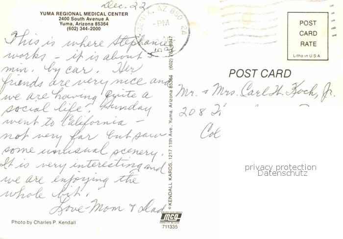 72912061 old postcard Yuma Arizona Yuma Regional Medical Center postalisch gelaufen Erhaltung siehe scans [LiesaD40] KatCode: 14140030000000