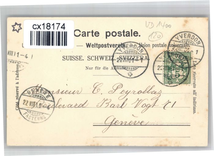 10724317 alte Postkarte Yverdon VD Yverdon College postalisch gelaufen KatCode: 11470240850978