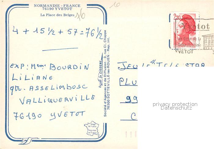 13162387 carte postale Yvetot Place des Belges postalisch gelaufen Erhaltung siehe scans [FriedD77] KatCode: 11170076376758