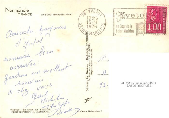 13586313 Yvetot Vue aérienne postalisch gelaufen Erhaltung siehe scans [FriedD77] carte postale Frie Katcode 11170076376758