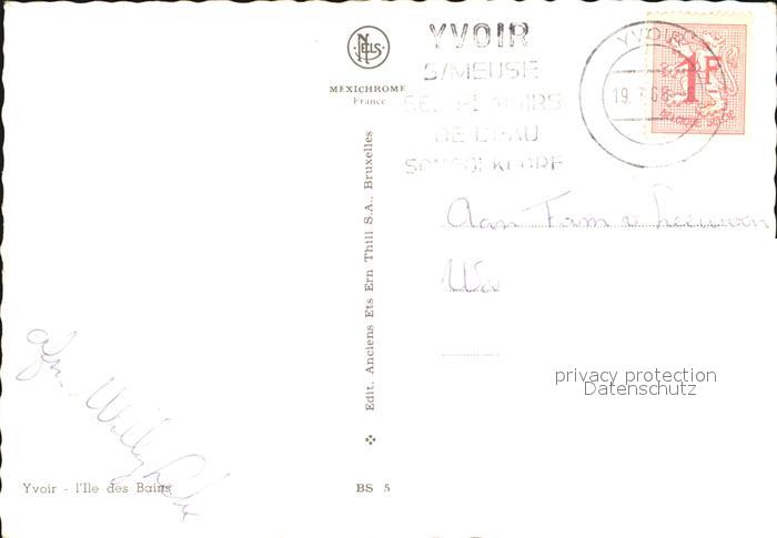 72597523 carte postale Yvoir L Ile de Bains postalisch gelaufen Erhaltung siehe scans [LiesaD40] KatCode: 11070091000697