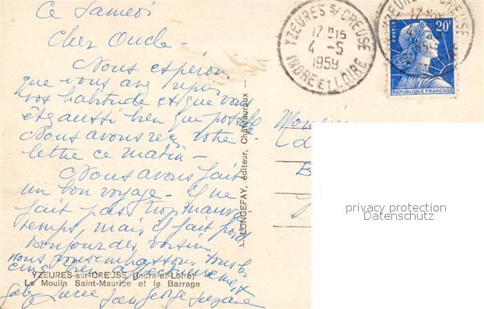 13594703 Yzeures-sur-Creuse Le Moulin Saint Maurice et le Barrage postalisch gelaufen Erhaltung siehe scans [WerneD78] carte postale Wern Katcode 11170037337282