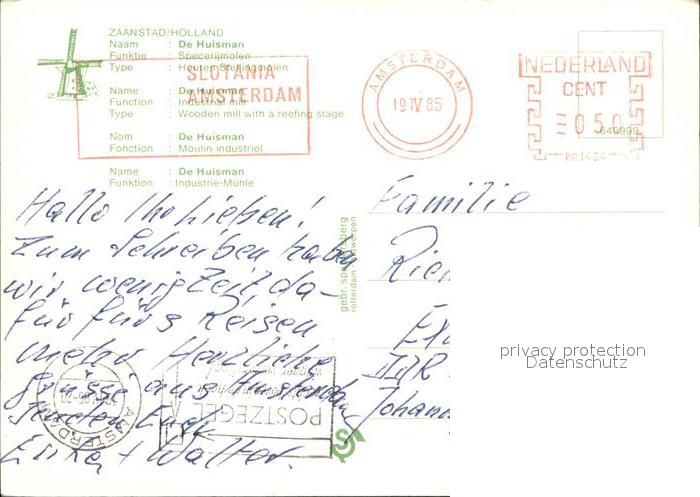 old postcard Zaanstad Windmuehle postalisch gelaufen Erhaltung siehe scans