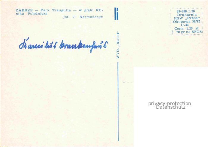 74085743 Zabrze Hindenburg Oberschlesien PL Park Traugutta w glebi Kinika Ploznicza postalisch nicht gelaufen Erhaltung siehe scans [WerneD78] KatCode: 11410