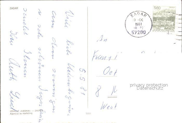 old postcard Zadar Zadra Zara Hotel Fliegeraufnahme postalisch gelaufen Erhaltung siehe scans