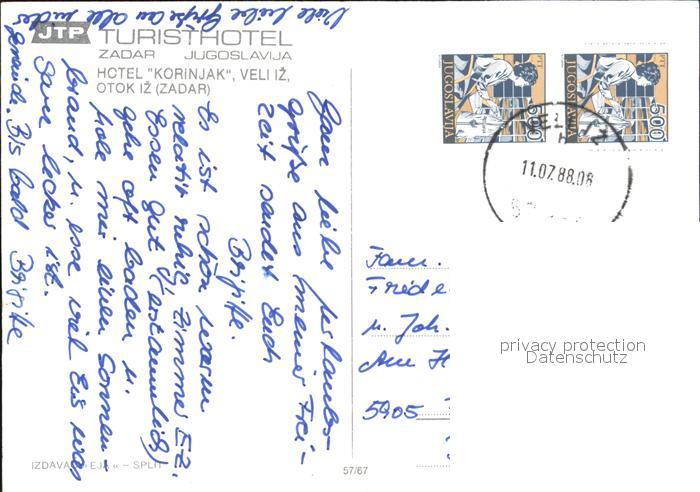 old postcard Zadar Zadra Zara Hotel Korinjak postalisch gelaufen Erhaltung siehe scans