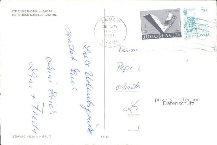 old postcard Zadar Zadra Zara Turisthotel Camping postalisch gelaufen Erhaltung siehe scans