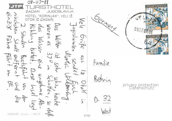 old postcard Zadar Zadra Zara Turisthotel Korinjak Hafen postalisch gelaufen Erhaltung siehe scans [LiesaD40]