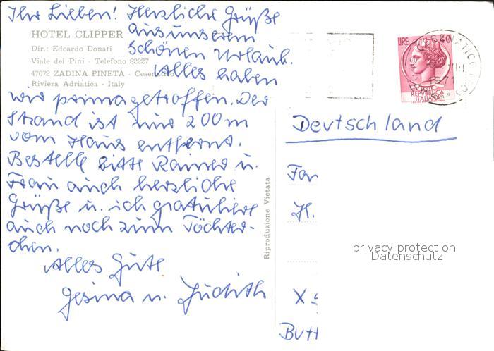 old postcard Zadina Cesenatico Pineta Hotel Clipper postalisch gelaufen Erhaltung siehe scans