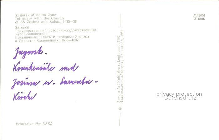 Zagorsk Infirmary with the Church of ss Zosima and Sabas postalisch nicht gelaufen Erhaltung siehe scans