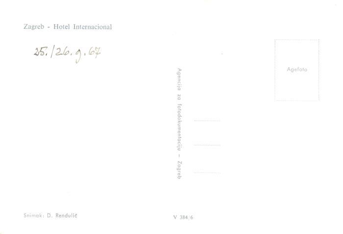 73871558 Zagreb Agram Croatia Hotel International postalisch nicht gelaufen Erhaltung siehe scans [WerneD78] Wern Katcode 11260