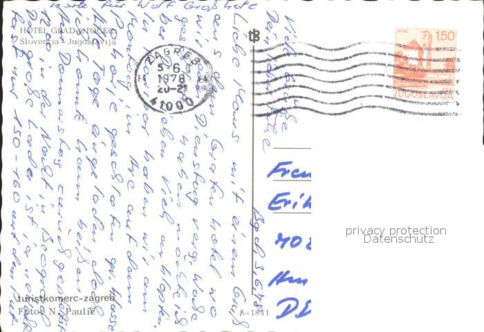 old postcard Zagreb Hotel Grad Otocec postalisch gelaufen Erhaltung siehe scans